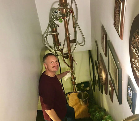 Both Gus and his wife, Valerie, have strong European roots. Valerie’s parents would frequently return to their homeland of Hungary. When they came back to the states, they brought with them Hungarian brandy known as Palinka, made by various family members and friends. This piqued Gus’ interest in making spirits. He began researching how to make alcohol and in the early 2000’s he built his first still in his garage. His first product was his own version of Hungarian Palinka. After refining the design and adding new attachments, eventually, his still could make other spirits like vodka, rum and moonshine.
